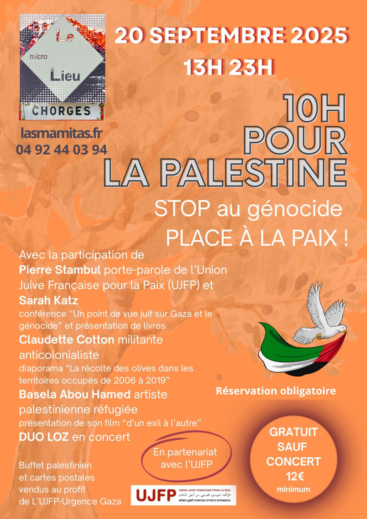Les 10H POUR LA PALESTINE sont destinées à offrir des regards croisés sur la situation de La Palestine, à Gaza et en Cisjordanie : génocide, colonisation, famine organisée, épuration ethnique et aussi possibles solutions de paix.
